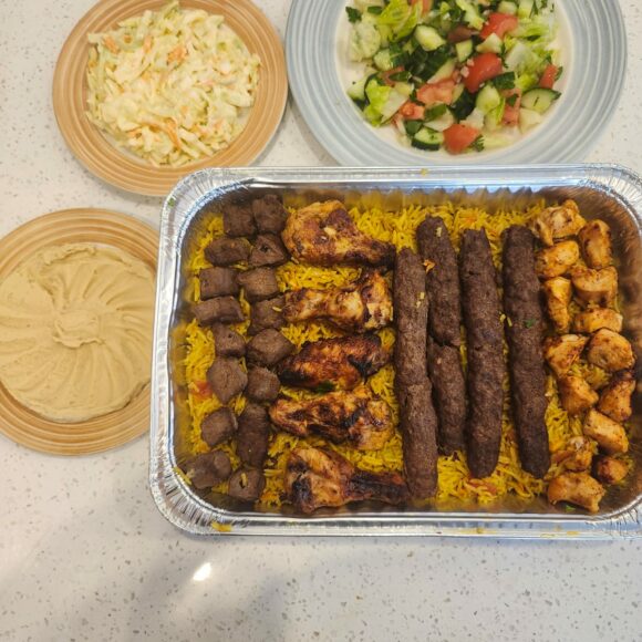 2 skewers chicken and kebab